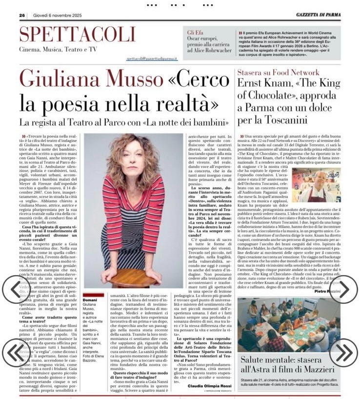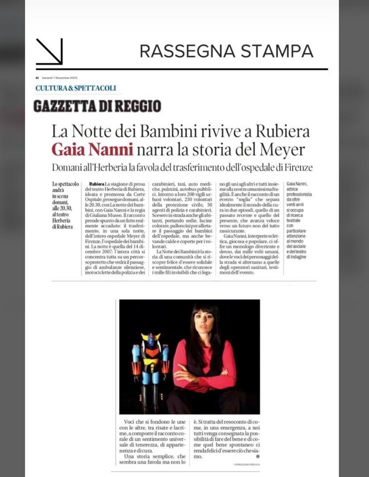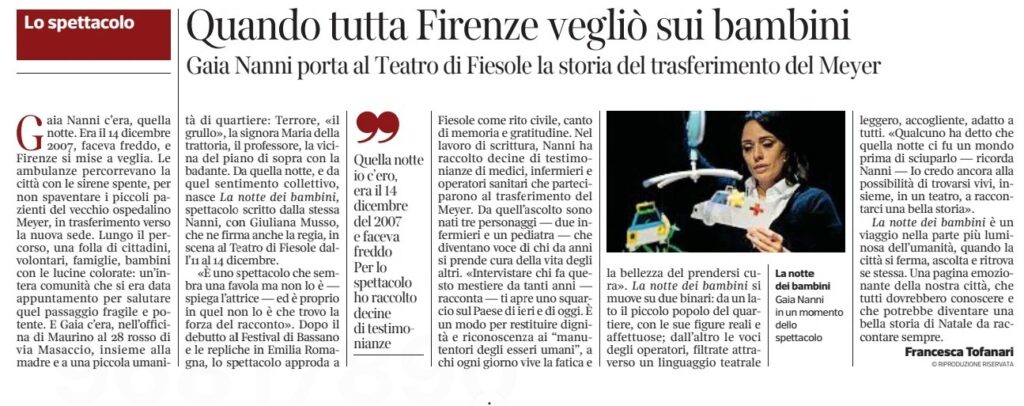 Gaia Nanni ricorda LA NOTTE DEI BAMBINI…, Corriere dello Spettacolo