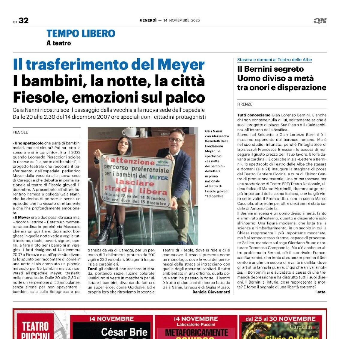 Musso e Nanni mettono in scena il trasloco dell’ospedale Meyer, Il resto del Carlino